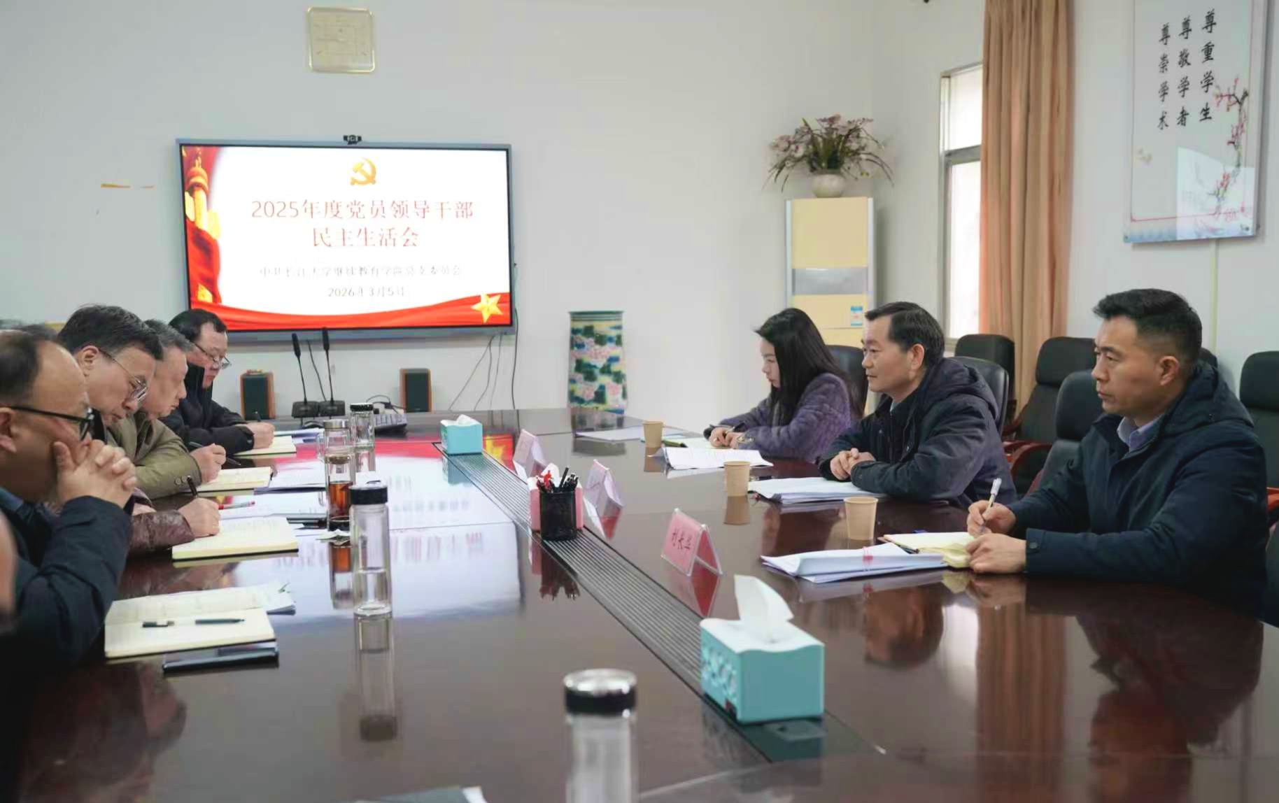 3月5日上午,继续教育学院党总支在207会议室召开2025年度党员领导干部民主生活会。学校民主生活会第四督导组组长、党委副书记敖廷华,副组长党委组织部副部长刘长华,联络员学校办公室科长侯聪到会指导。继续教育学院院长、党总支书记蒋四华主持会议,班子党员领导干部参加会议。