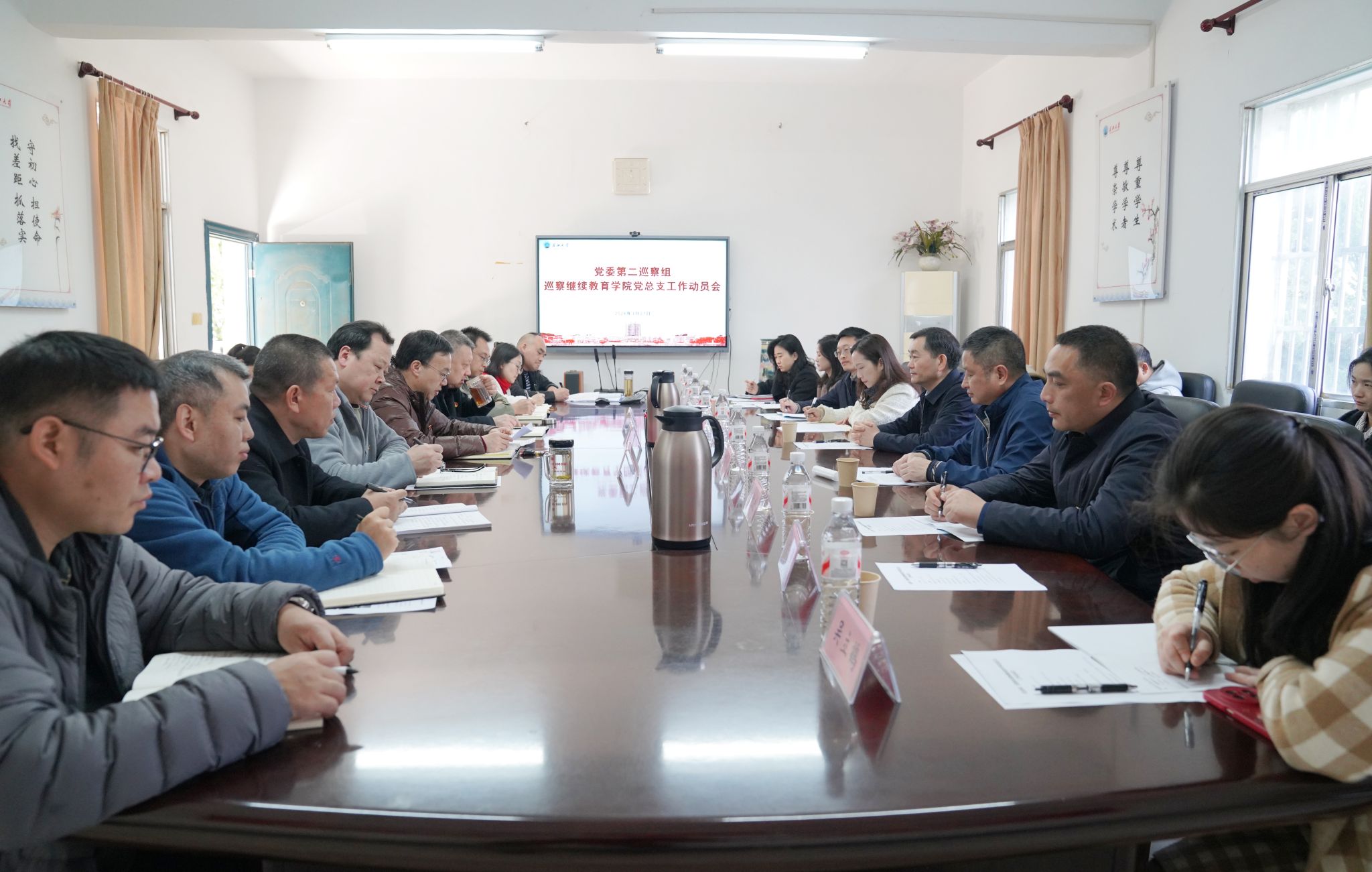 3月27日上午,按照学校党委统一部署,校党委第五轮第二巡察组巡察继续教育学院党总支工作动员会在继续教育学院207会议室召开。党委副书记敖廷华出席会议并讲话,校党委第二巡察组全体成员、党委巡察办负责人、继续教育学院全体教职工参加会议。会议由党总支书记、院长蒋四华主持。