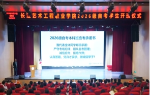 2026年3月31日下午,我校2026级非全日制自考本科助学班开班仪式在长江艺术工程职业学院隆重举行,参与该班的高职学生正式开启了本科求学之路。助学单位-长江艺术工程职业学院校长金仁炎及相关二级单位领导、主考学校-长江大学继续教育学院院长蒋四华、副院长田经兵、特邀嘉宾-武汉现代家政进修学院书记朱孟慧等领导共同出席了本次仪式。仪式由长江艺术工程职业学院副校长兼继续教育学院院长管楚新主持。
