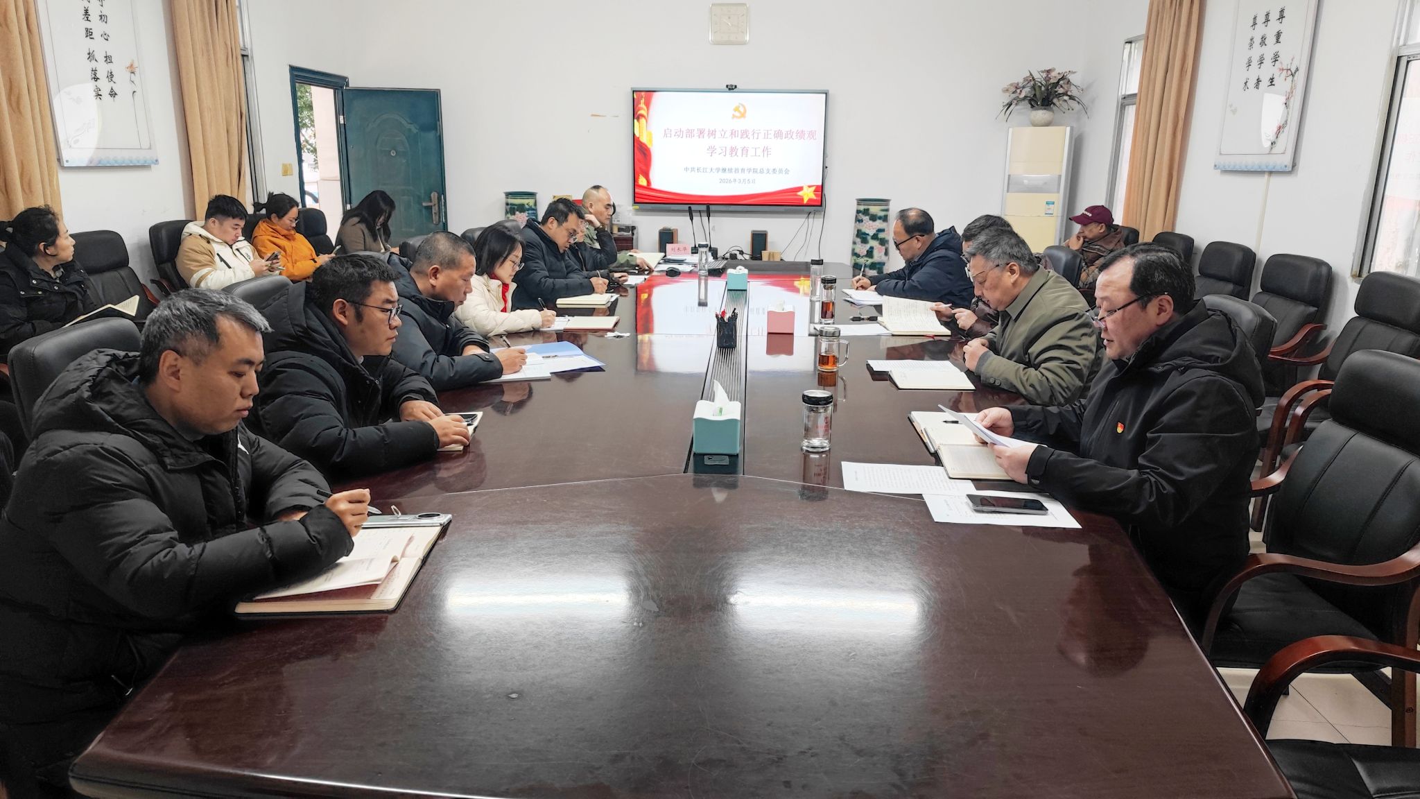 3月5日上午,继续教育学院党总支召开全院大会,启动部署树立和践行正确政绩观学习教育工作,教职工党支部和自考本科助学班党支部全体党员、干部参加了会议。会议由院长、党总支书记蒋四华同志主持。