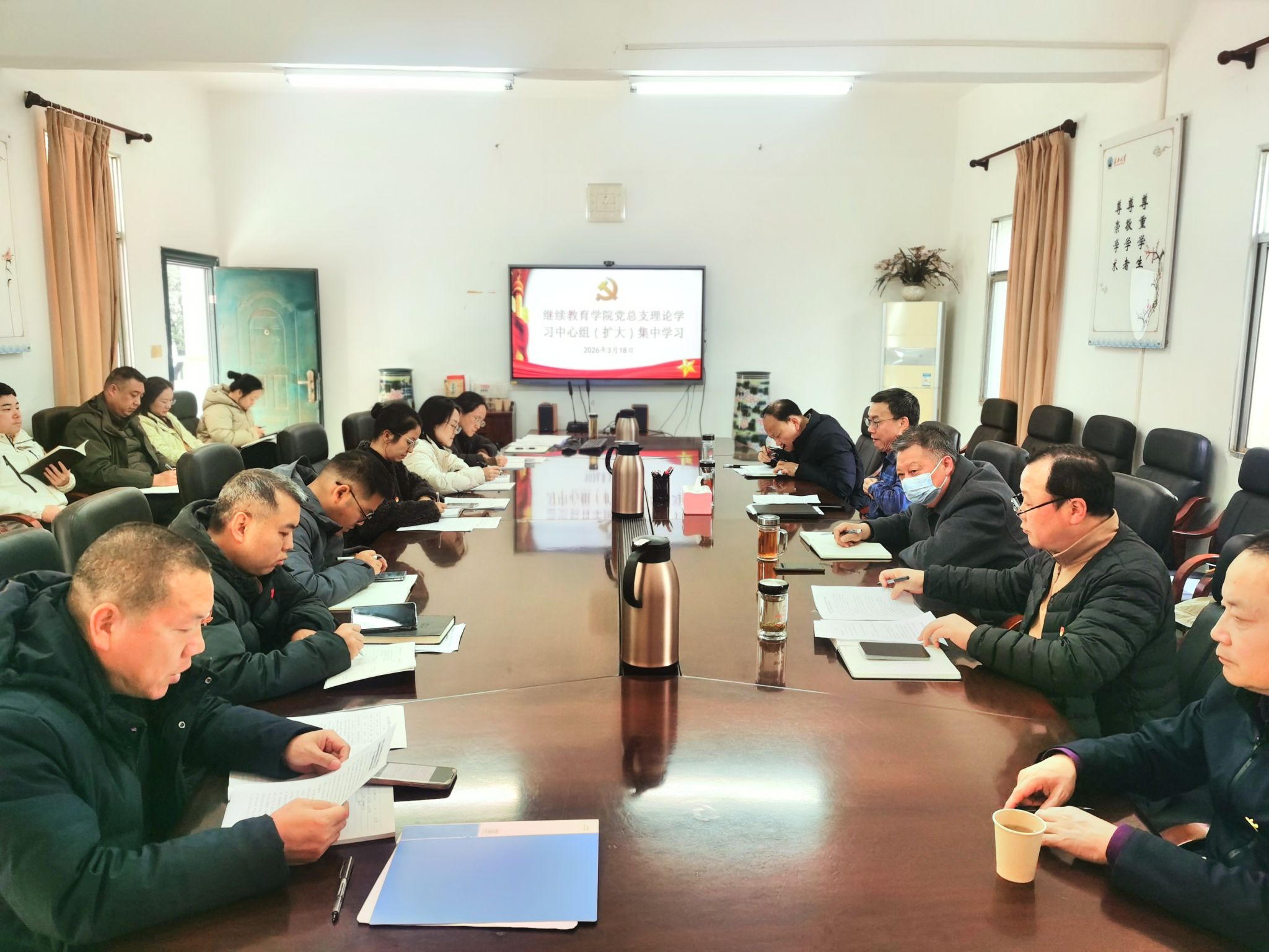 2026年3月18日下午,继续教育学院在207会议室开展3月份党总支理论学习中心组集中学习扩大会暨教职工党支部主题党日活动,全体教职工参加会议。会议由院长、党总支书记蒋四华同志主持。