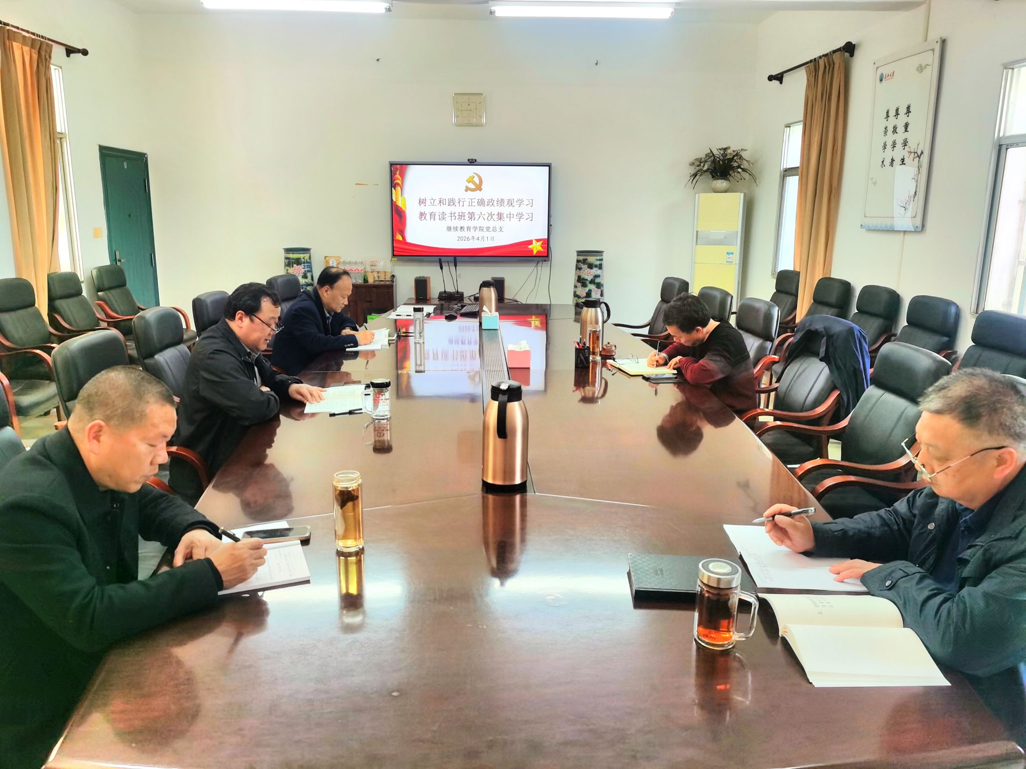 4月1日下午,继续教育学院党总支举行树立和践行正确政绩观学习教育读书班第六次集中学习。院长、党总支书记蒋四华主持,党总支委员参加学习。
